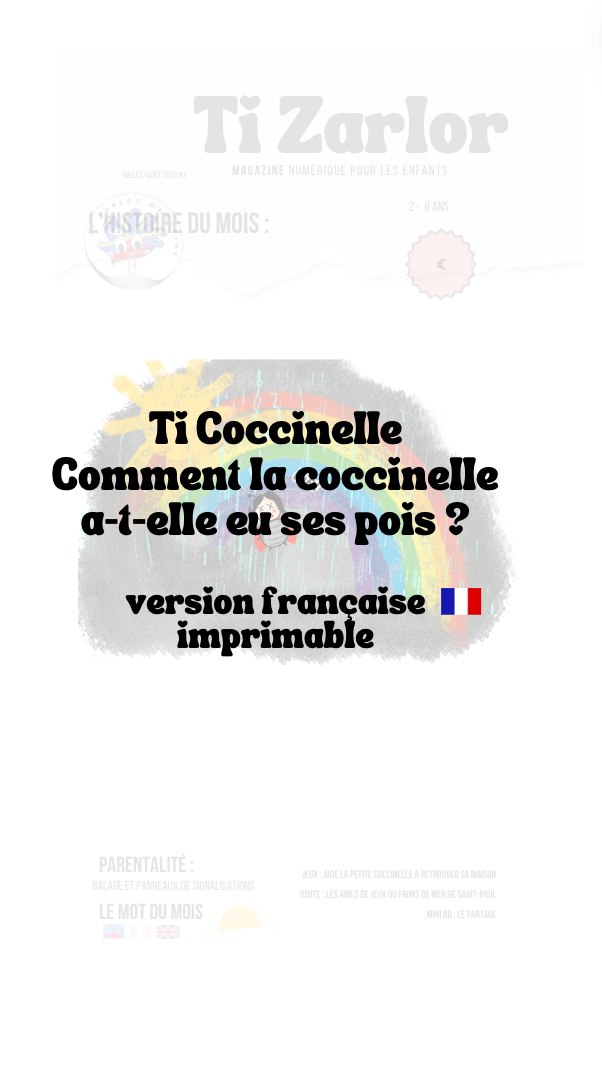 Numéro 1 Histoire : Comment la coccinelle a-t-elle eu ses pois ? illustrée, en français et créole réunionnais. + version sans image imprimable BD du Champignon Mignon : Le partage Parentalité : Balade et panneaux de signalisations